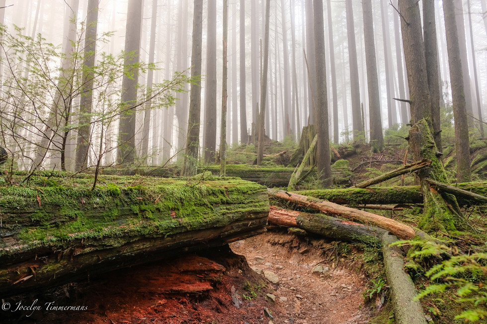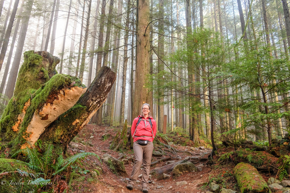 What to do when the signs at the bottom of Mt. Seymour are telling us to "Turn back. Parking lot full." I should've known, it being Christmas holidays and all. But the days of sun are few and far between so we took a chance. Reservations would've helped. So we quickly created a Plan B. Since it was 1:30pm (we'd planned to do a sunset snowshoe), this limited our options. My All Trails App was showing me the nearby hikes so we decided to do this shorter loop, nestled in the suburbs of North Vancouver.