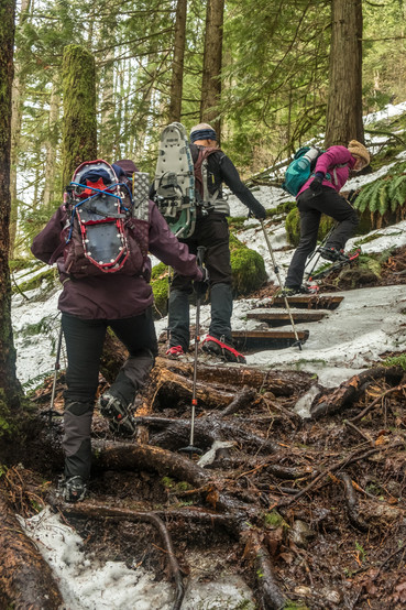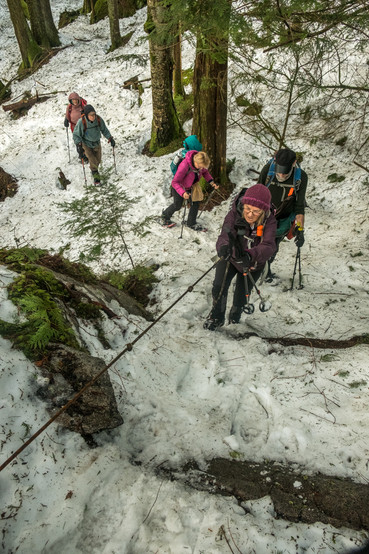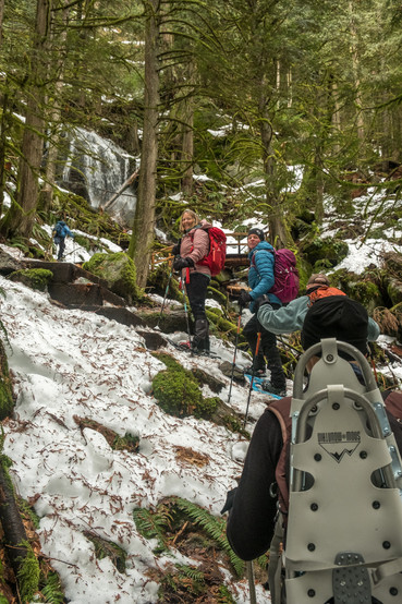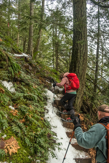 Not far past the Stone Garden, most of the group switched from snowshoes to micro-spikes. I didn't want to post-hole so I stuck with the snowshoes. But it was awkward climbing up & down on the stairs with them.