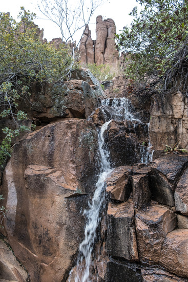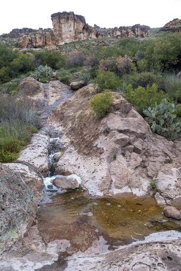 I was so glad when we woke and the incessant rain and dark clouds had begun to part. I so wanted to do this hike. Four years earlier, when Case & I were having a burger at the saloon in the Goldfield Ghosttown, we talked to an older couple in their late 80s who were the live entertainment for the evening. They were deftly playing a fetching tune on their fiddles and singing for the patrons. They grew up by the Superstion Mountains and advised us to go past the Fermont Saddle, to the Lone tree and then return on the higher ridge, along Geronimo's Cave which was just a bit off trail. Because it had started raining at noon, and from doing the research I knew there was a pretty sketchy piece to negotiate on some smooth rock faces during the descent. So I was thinking it wouldn't be safe to do it. But that's not how the day turned out...