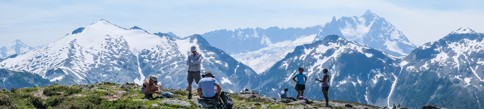 Our plans for an early start to beat-the-heat got squashed when it ended up taking almost an hour to cross the border. Then when we arrived at the Glacier Public Service Center, the rangers said they ran out of day passes! Thankfully Pramila, who'd been waiting for us for an hour, managed to get one. She left her car parked there and we used her pass. There was a long line of vehicles parked along the FSR road that led to the trailhead. We didn't start hiking till 10:00am and all of us were back by 4:30pm.