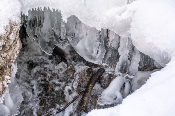Little Case was so intrigued by how the water rushed through the ice cavities.