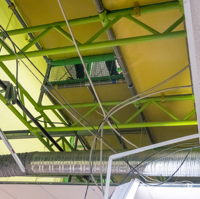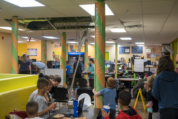 A child fell through the roof! On the play equipment above, a piece of padded floor tilted when an adult who shouldn't have been up there, stood on it. Thankfully the father was sitting right below the floor when it broke and was able to catch his child. Everyone had to clear out except those who were directly affected. Who knows when this place will open to the public again.