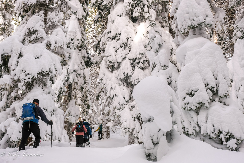This route was created by Gary Baker & Hans Roos over a decade ago. Both are and were active important members of the Chilliwack Outdoor Club. Breaking trail can be a real chore. We're thankful to the group infront of us for taking on that task in powder snow that was sometimes knee deep.