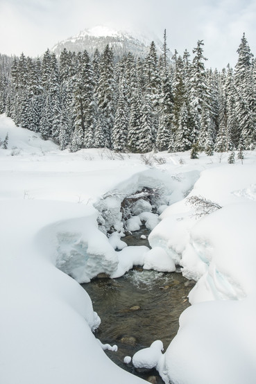 After a fresh dump of snow and temperatures hovering around the freezing mark, conditions were ideal for snowshoeing. We parked by the highway, having a bit of a later start. On a Saturday, this meant not having to break trail.